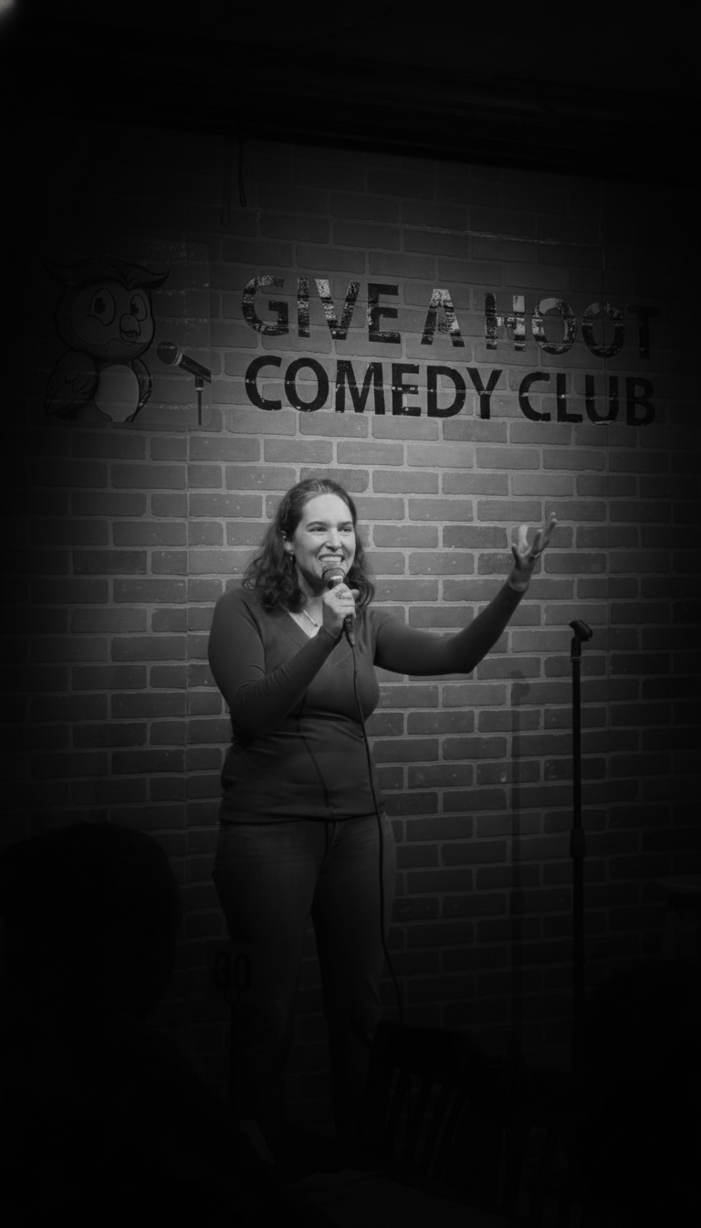 Vanessa brings energy and charisma to every performance, whether in intimate comedy clubs or larger venues. Her theatrical background shines through in her confident stage presence and engaging delivery.
